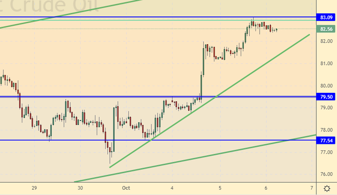 Рынок нефти продолжает отыгрывать европейское газовое помешательство. Чем выше цены на газ в Европе, тем привлекательнее выглядит нефть. Как так получилось, что запасов топлива в Европе к зиме не было создано? Вот в чем вопрос. Ведь дело не в деньгах, их сейчас печатают под любые цели в любом объеме, скорее это вопрос ментального здоровья руководящей верхушки. В результате мы имеем перспективу вымерзания европейской периферии, для столиц энергию найдут. А Россия вся в белом: мы к вам трубу тянем, а вы упираетесь.