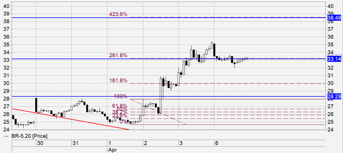 Продажа: при касании 38.00 – обязательно. Стоп: 39.60. Цель: 28.40.