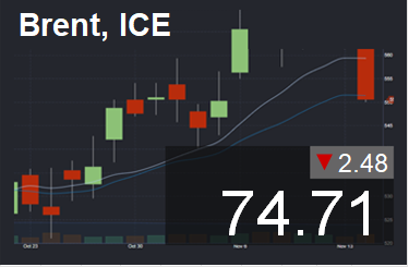 Цена в долларах за баррель. Для пересчета в доллары за тонну нефти марки Brent, необходимо цену умножить на 7,59.