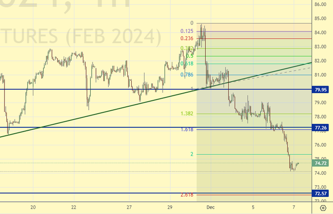 Рынок с интересом наблюдает за переговорами Путина в арабском мире. Внешне всё выглядит так, что проблем с регулированием добычи быть не должно. То есть, Запад может не рассчитывать на то, что ему удастся получить цены ниже 60.00. Да, возможно после 30-го года, когда зеленая повестка расширится, а все крыши домов в Германии будут оборудованы солнечными панелями, потребление топлива сократится, но до 30-го года, нефть продолжит пользоваться спросом.