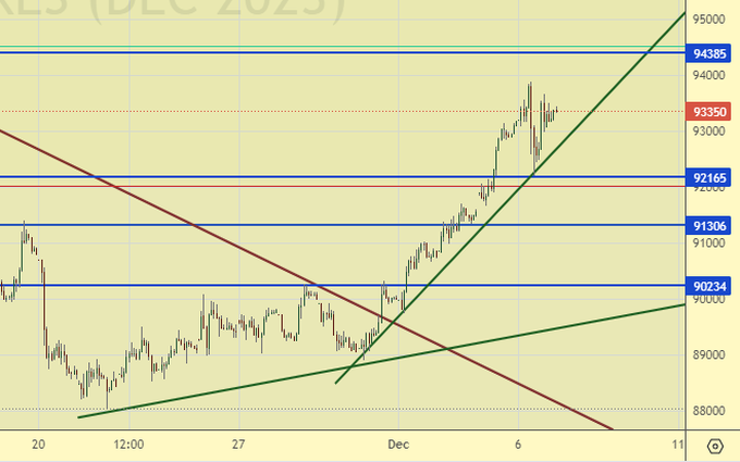 Читая наши прогнозы, вы могли взять ход вверх на фьючерсе на пару доллар/рубль от 89200 до 92400.