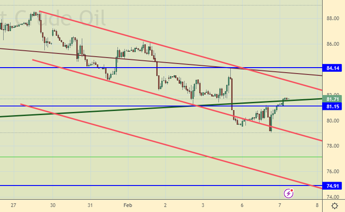 Никакого эффекта на рынок продажи валюты Минфином не произвели. Рубль продолжил падение, что вырисовывает перед нами весьма дурные перспективы на весну. Нельзя исключать подъема к 82.00, а возможно и к 88.00. Изменить положение вещей может только частичное снятие санкций. Второй вариант: производить как можно больше товаров внутри страны, но это произойдет явно не в ближайшее время.