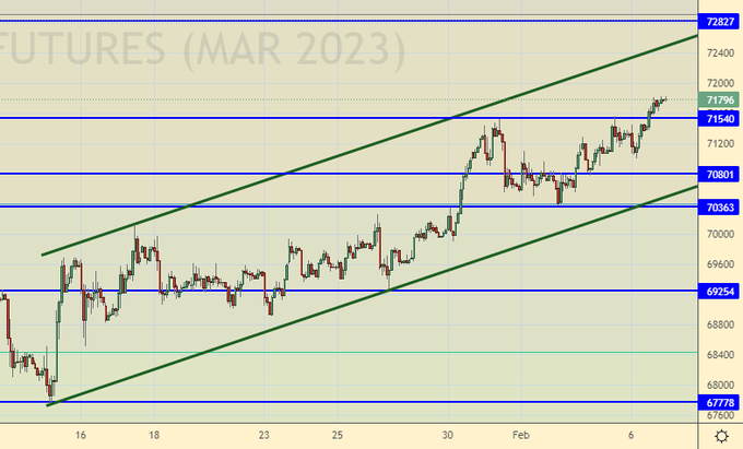 Покупка: нет. Кто в позиции от 71000, держите стоп на 70400. Цель: 88000.