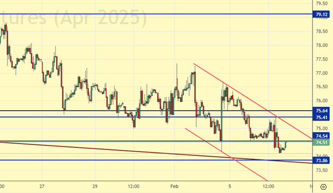 Покупка: нет. Кто в позиции от 74.73 и 75.81, держите стоп на 73.80. Цель: 90.00.