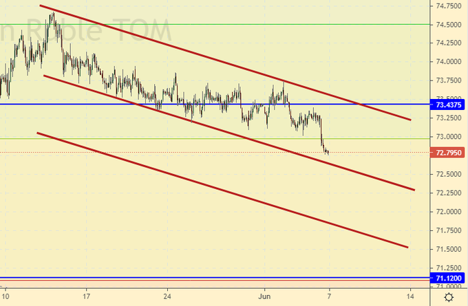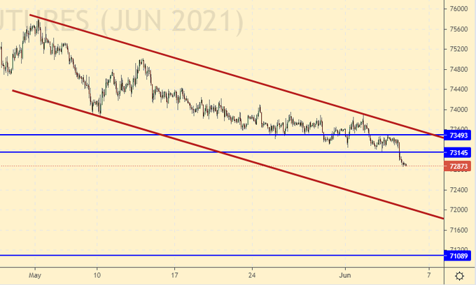 Продажа: нет. Кто в позиции от 73400, перенесите стоп на 73300. Цель: 71200.