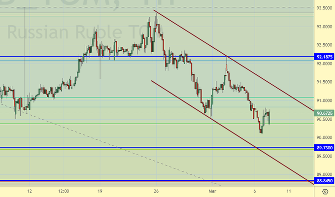 Ситуация комфортна для того, чтобы стоять в сторону укрепления рубля. Пока мы находимся по паре внутри падающего канала покупать не нужно. Отметим, что сокращение внешнеторговых операций действительно может повлечь за собой укрепление российской валюты в долгосрочной перспективе. Но не забываем и о ставке в 16%, что откровенно много.