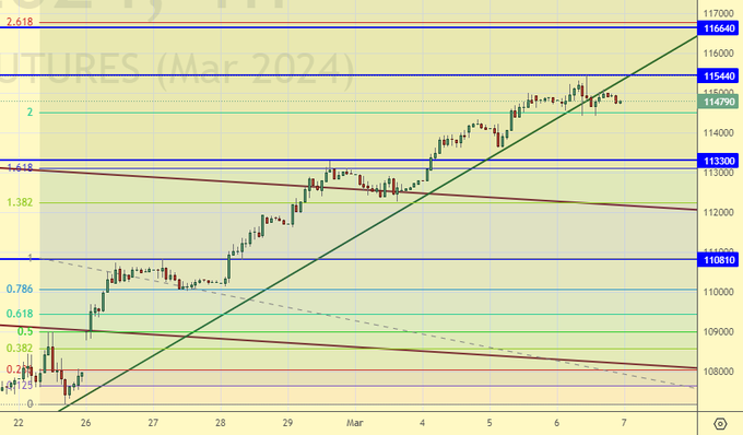 Рынок, может быть, и вырастет, но гарантировать мы этого не можем. Продолжается обрабатывание района 115000, который не пускает котировки вверх. На мелких интервалах есть вероятность формирования фигуры «голова-плечи», что должно привести к откату сегодня перед праздниками.