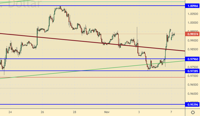 Евро вырос на фоне роста безработицы в США в октябре. Ситуация непростая. При откате к 0.9850 покупать обязательно. Пока позиции доллара вряд ли сильно пошатнутся, но появление данных о слабости рынка труда будет сдерживать оптимизм в отношении американской валюты. С другой стороны, мало что сейчас в мире нужно также сильно как американский доллар.