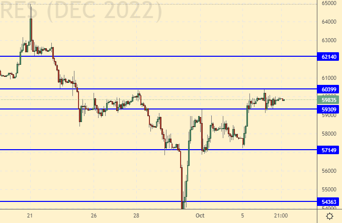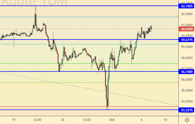 Пара продолжает стоять в диапазоне, никак не реагируя на ситуацию за рубежом. Объемы торгов низки, каких-либо идей сейчас не будет ни у кого. Лучший вариант – это выжидать. С точки зрения техники рост выше 62.00 способен привести к тому, что на рынок войдут быки.