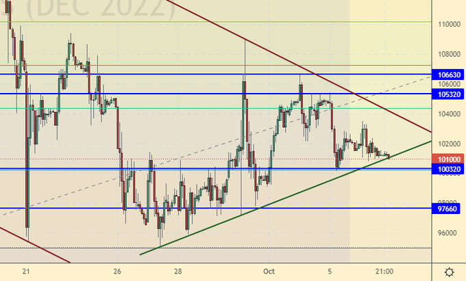 Продажа: в случае падения ниже 99000. Стоп: 106000. Цель: 80000 (50000). Кто вошел от 103500, перенесите стоп на 104000. Цель: 80000 (50000).