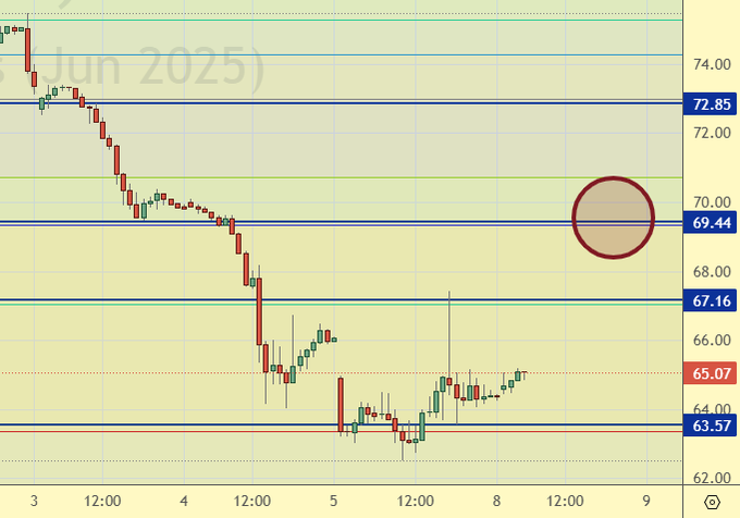 Рынок нефти в случае восстановления к 70.00 надо продолжать продавать.