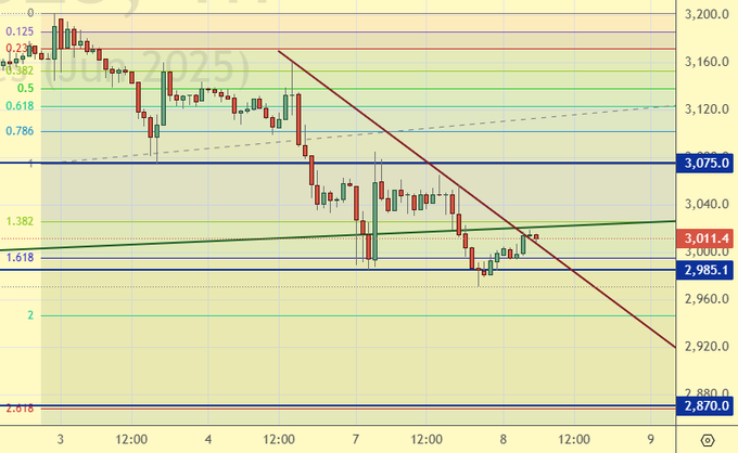 Продажа: нет. Кто в позиции от 3034, держите стоп на 3090. Цель: 2870 (пересмотрена).