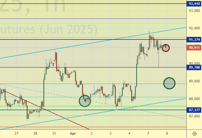 Покупка: нет. Кто в позиции от 86750 и 88000, держите стоп на 88000. Цель: 96600 (115000).