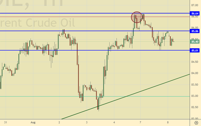 Продажа: нет. Кто в позиции от 86.30 и 86.10, перенесите стоп на 86.56. Цель: 70.00?!