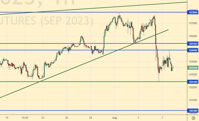Продажа: нет. Кто в позиции от 107000, держите стоп на 107100. Цель: 90000 (может быть пересмотрена).