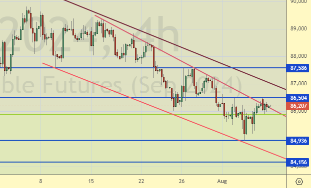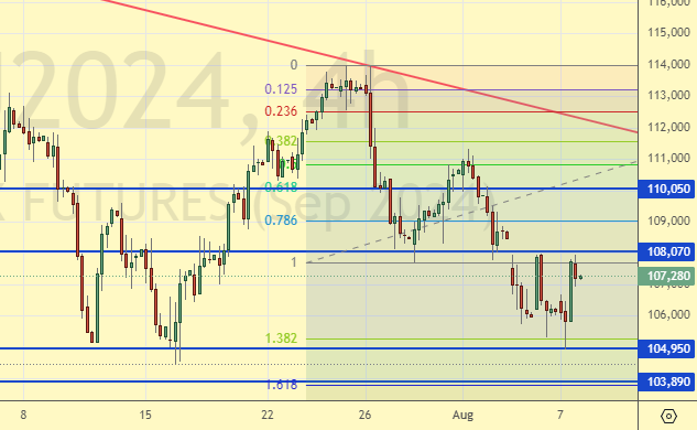 Как-то мы подозрительно блекло пытаемся пройти ниже 105000. Если будет всё не очень весело, для продавцов, то мы можем отправиться к 110000. Вряд ли этот предполагаемый рост разумно наложится на атаку на Курскую область, но у рынка свои законы, иногда неразумные.