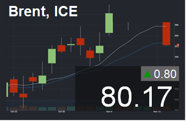 Цена в долларах за баррель. Для пересчета в доллары за тонну нефти марки Brent, необходимо цену умножить на 7,59.