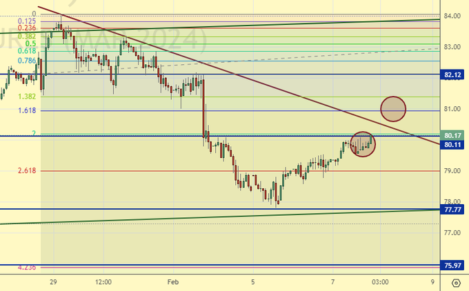 Поступает информация о том, что часть поставок нефти по Красному морю продолжается несмотря на угрозы обстрела кораблей. Сложно отменить уже заключенные контракты, при этом коммерсантов ситуация вынуждает платить за страховку 1 доллар за 1 баррель нефти если маршрут идет через Красное море. Если ситуация в регионе не стабилизируется, довольно скоро, в течение нескольких месяцев, все маршруты будут идти вне Красного моря, путь это и дольше, и дороже. Желающие могут продать на текущих уровнях.