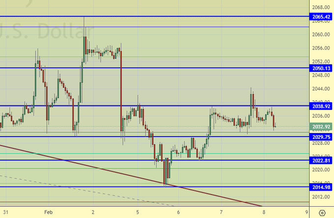 Рынок продолжает находиться в диапазоне. Идеи отсутствуют. Отметим лишь, что мы выше 2000, что придает некий психологический вес быкам. Усиление позиций доллара возможно, так как спрос на американские облигации остается высоким.