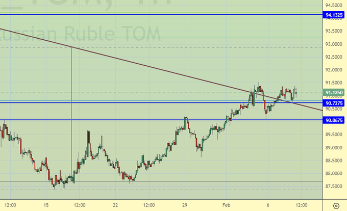 В текущей ситуации рассчитывать на укрепление рубля очень сложно. Необходимо пройти ниже 90.50 для того, чтобы мы вернулись к рассуждениям о продажах. Наверху у нас цель на 97.00. В случае осложнения ситуации с обслуживанием контрактов в Китае, получим дополнительное инфляционное давление.