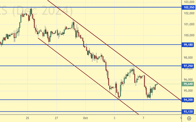 Продажа: нет. Кто в позиции от 96300, перенесите стоп на 96900. Цель: 90600.
