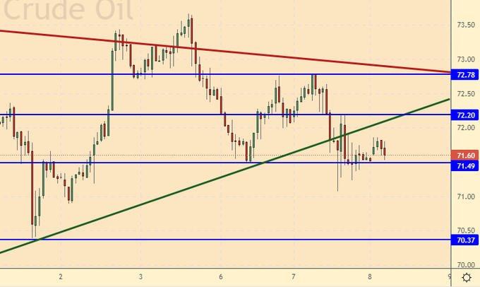 Продажа: нет. Кто вошел от 72.70, перенесите стоп на 72.60. Цель: 61.50.