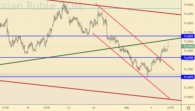 Учитывая то, что Минфин начал покупку долларов со вчерашнего дня, можно предположить, что рублю придется прикладывать усилия для дальнейшего укрепления против доллара. Планируется продать 327 млрд. рублей с 7 сентября по 6 октября. Тем не менее, впереди у нас заседание ЦБ РФ в пятницу. Если ставка будет повышена рынок не сможет быстро пройти выше 74.00.
