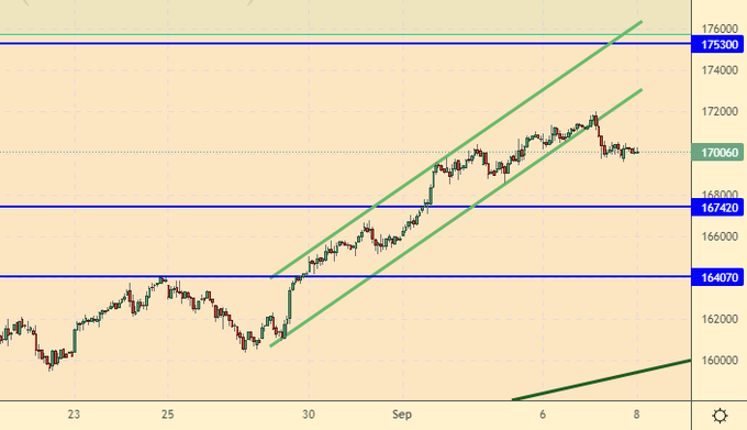 Покупка: при откате к 166000. Стоп: 164700. Цель: 175000. Кто в позиции от 161000 и 161500, держите стоп на 164700. Цель: 175000.
