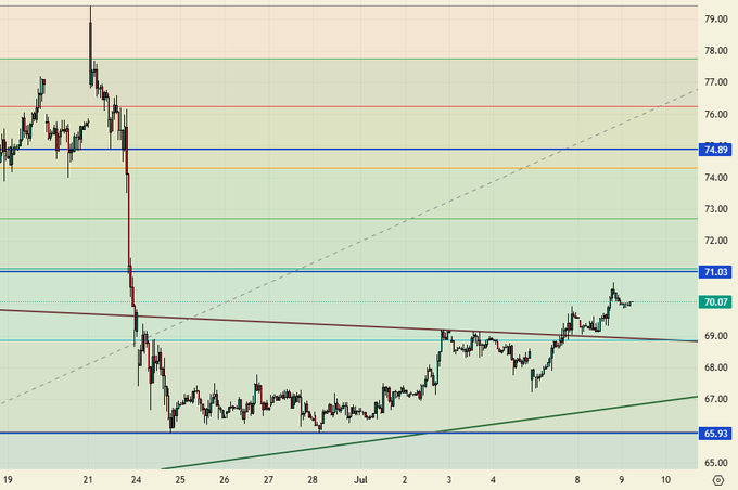Продажа: сейчас (70.07). Стоп: 71.30. Цель: 60.00?!
