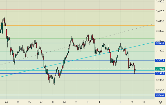 Продажа: возможна. Кто в позиции от 3319, перенесите стоп на 3353. Цель: 2800?