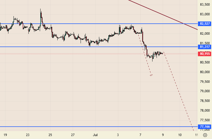Покупка: в случае роста выше 82100. Стоп: 81100. Цель: 120000?!