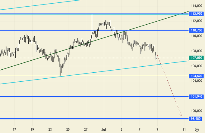Продажа: нет. Кто в позиции от 111410, перенесите стоп на 110600. Цель: 95000.