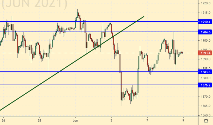 Вероятнее всего рынок будет оставаться в диапазоне 1880 – 1900 вплоть до заседания ФРС 16-го числа. Впрочем, в четверг выйдут данные по инфляции в США, и в случае роста показателей, они могут спровоцировать укрепление доллара, так как пространство для маневра у господина Пауэлла будет существенно уменьшено, и далее тянуть с повышением ставки будет небезопасно.