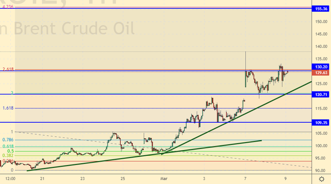 130.0 мы посетили, далее нас ждет 150.00. В апреле пойдут отчеты за первый квартал и волосы у многих станут дыбом от той печали, которая будет отражена в цифрах компаний. После 150.00 рынок нефти перейдет к консолидации у уровня 120.00.