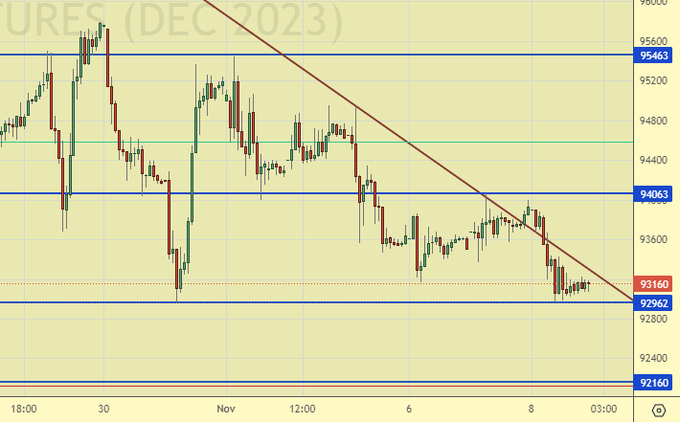 Продажа: при подходе к 96.00. Стоп: 97.00. Цель: 87.00. Кто в позиции от 93.60, держите стоп на 93.80. Цель: 87.60.