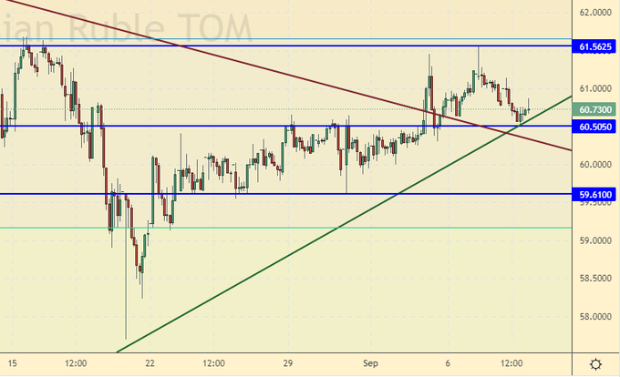 Пара пока не может подняться выше 62.00, что делает разговоры о возможном росте доллара против рубля преждевременными. Перед нами затянувшийся диапазон. Когда и в какую сторону произойдет из него выход большой вопрос. Набираемся терпения.