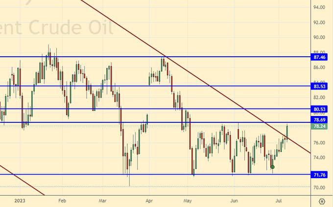 Пока рынок нефти воспринимается как сбалансированный, котировки выше уровня 80.00 не просматриваются.