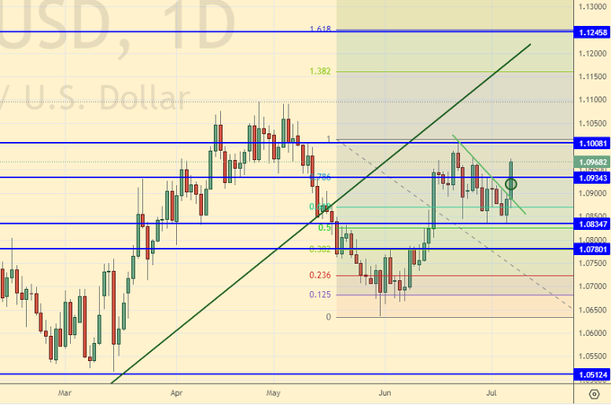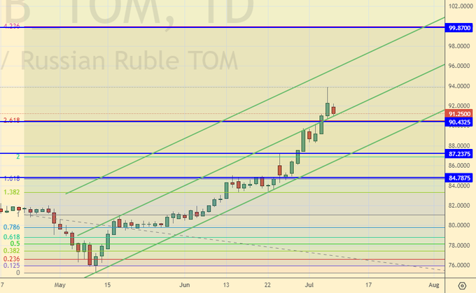 Перспективы по паре: 100.00, далее 120.00 (август), потом возможен откат, например к 110.0, затем 1000 (тысяча). Пока это черный (серый) юмор, но, если ЦБ и дальше будет избегать своей основной функции: обеспечение стабильности рубля, мы можем оказаться где угодно.