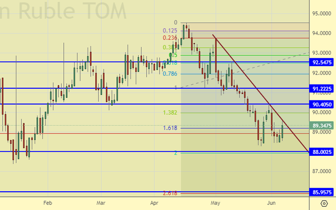Сценарий роста: рассматриваем июльский фьючерс, дата экспирации 28 июня. Пока мы не поднимемся выше 84.00 о покупках не думаем.