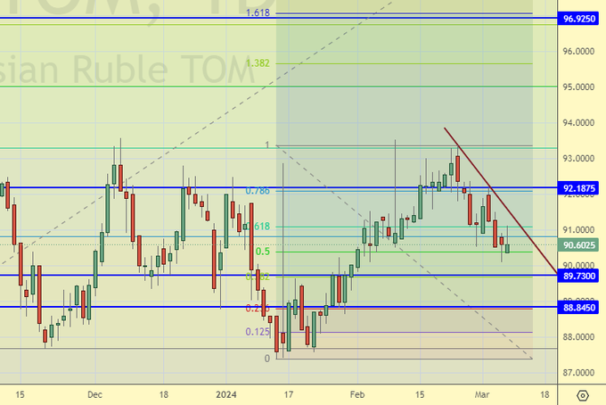 Сценарий роста: в случае роста выше 92.30 возобновим покупки. Пока вне рынка.