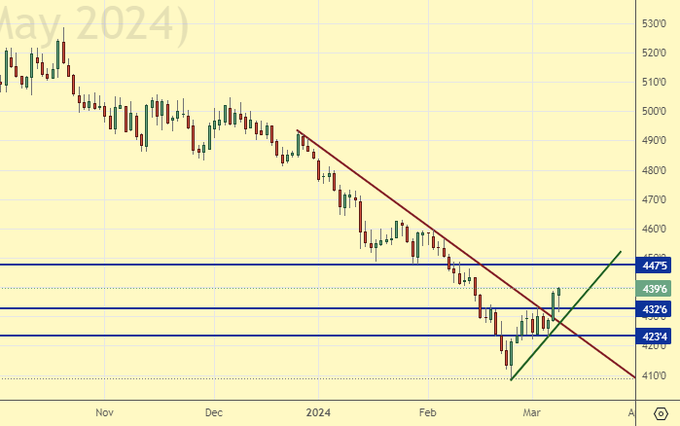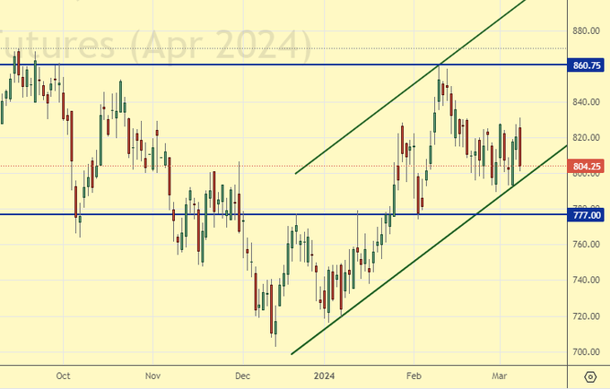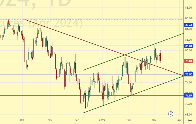 Сценарий роста: перешли на апрельский фьючерс, дата экспирации 11 апреля. Купить можно, но с коротким стоп-ордером.