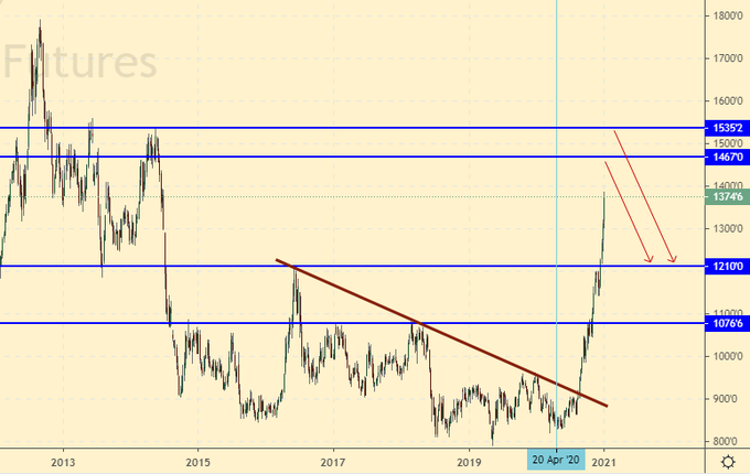 Пятый страх, самый желанный у части россиян. Просто так, вот хочется и всё. Доллар рухнет. Вопрос только как, ведь мировой долг 270 трлн. долларов и все друг-другу в большинстве своём должны именно в американской валюте, а её надо где-то брать, чтобы отдавать. Но, здесь стоит признать, что если демократы в США продолжат раздавать деньги, то шанс на ослабление у индекса доллара появится. В этом случае весь рынок товаров будет получать поддержку от плавного снижения американской валюты. В то, что доллар рухнет не верим. Впрочем, если в Вашингтоне, люди с рогами на голове будут каждую неделю брать конгресс, то всё возможно.