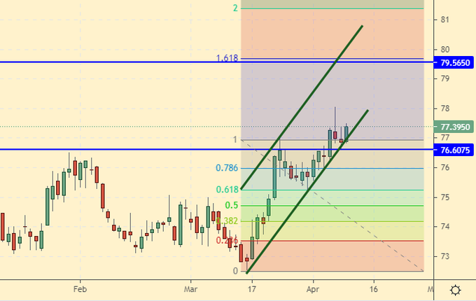Завтра День космонавтики, пожелаем рублю остаться на земле, то есть в районе 77.00.