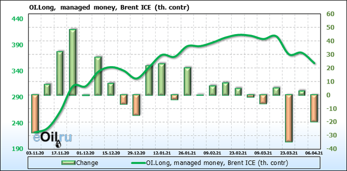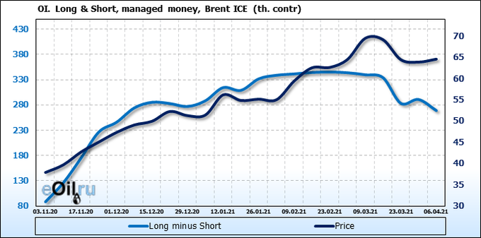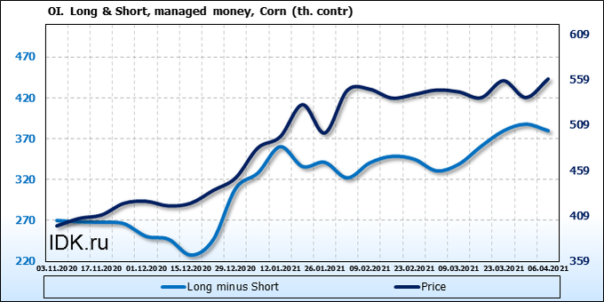 Смотрим на объемы открытого интереса управляющих. Вы должны учитывать, что это данные трехдневной давности (за вторник прошедшей недели), они же и самые последние из тех, что публикует биржа ICE.