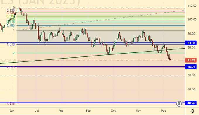 Сценарий роста: рассматриваем декабрьский фьючерс, дата экспирации 30 декабря. Как и неделей ранее продолжаем отказываться от покупок. Ждем падения рынка к уровню 67.00.