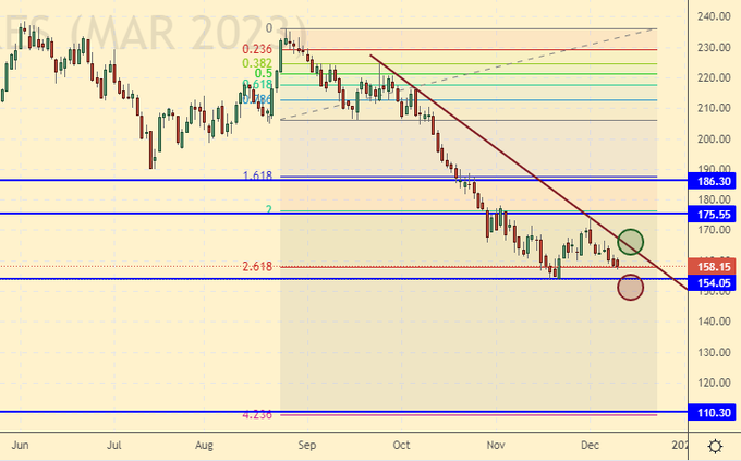 Покупка: в случае роста выше 165.00. Стоп: 158.00. Цель: 210.00 центов за фунт.