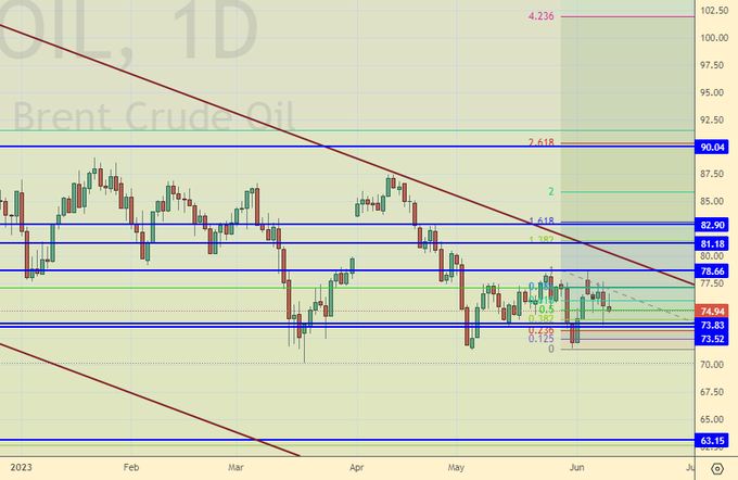 Продажа: нет. Кто в позиции от 72.00, перенесите стоп на 74.30. Цель: 62.00?!