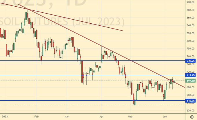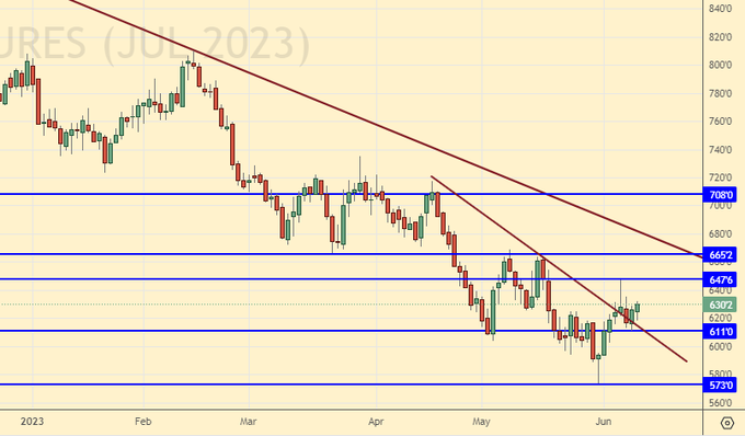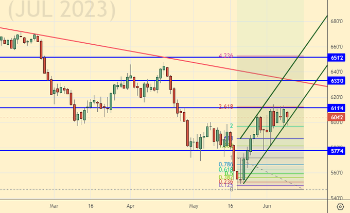 Прогнозы по валовому сбору кукурузы вышли в рамках наших ожиданий и остались на прежнем уровне в районе 1222 млн. тонн. При этом быки продолжают упрямо держать рынок, что говорит о явном сговоре. Или, кто-то что-то знает. Возможно, что свет увидит какой-нибудь законопроект, в первую очередь в США, будут из кукурузы что-то делать, например топливо. Но, возможно и другое развитие событий: Мексика откажется с 24-го года от американской генетически модифицированной кукурузы. Вот тогда рынок в Чикаго точно рухнет, а все быки разбегутся. Надо быть очень осторожным торгуя фьючерсами на кукурузу.