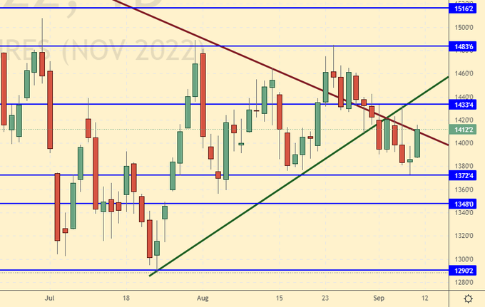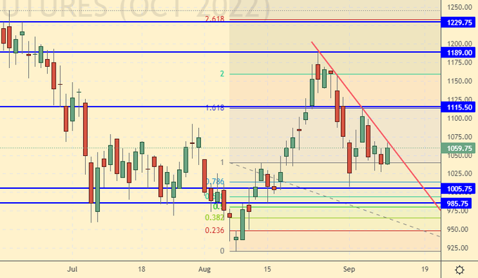 Сценарий роста: рассматриваем октябрьский фьючерс, дата экспирации 28 сентября. Текущее падение можно использовать для покупок. Пока мы продолжаем верить в высокие цены на газ в США.