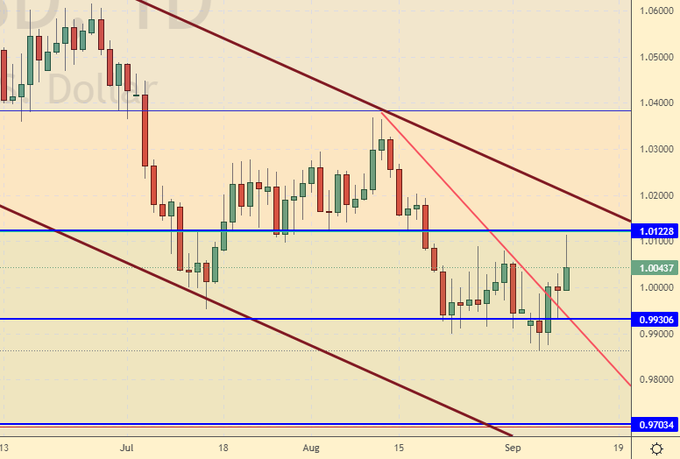 Сценарий падения: продолжаем держать шорты. Наша цель 0.9700. Не исключено, что позже мы увидим и 0.8600.